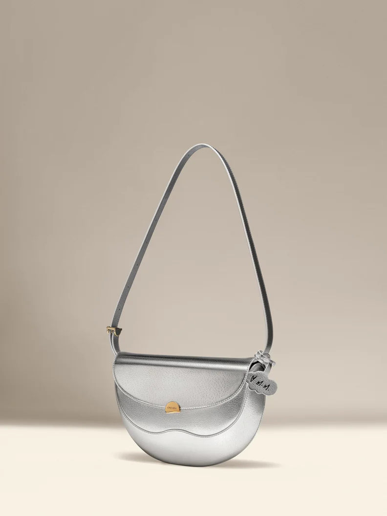 Dazzles in a fabulous metallic silver hue reminiscent of Maye's signature hair color, this supple yet structured compact bag is just the right size to fit your essentials for a glamorous night out.